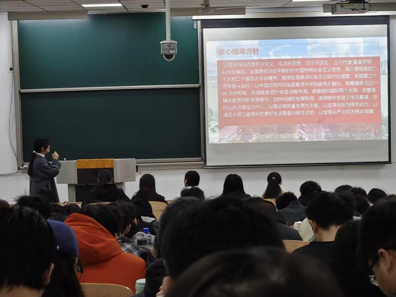 在教1-204教室举办“擘画新蓝图奋进新征程”专题团日活动,兵器学院团委组织部部长王星雨担任主讲人。